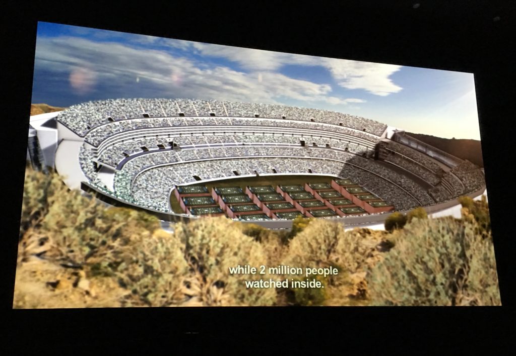 The crater itself is so large that 20 football fields can fit inside of it and the edges could fit 20 million fans! The film showed a mock up of this.