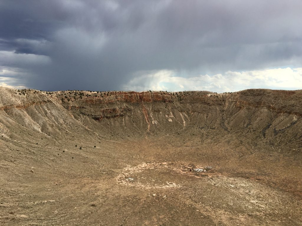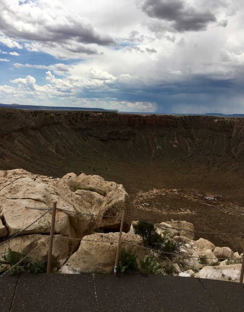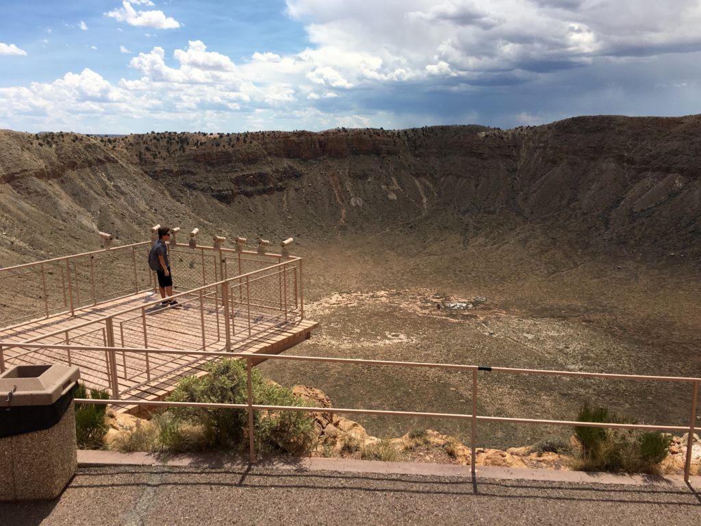 The crater. It’s SO much larger than it looks. Down at the bottom there is a mine shaft (where they dug for meteorites, and there is also a dummy of a 6 foot tall astronaut that you can’t even see from the top unless you look through the telescope! It is MASSIVE!