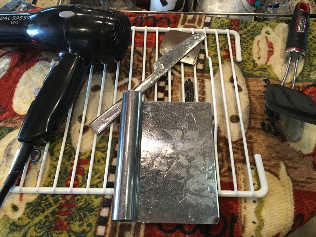 Tools of the trade. (Yes, that’s a blow dryer you see!)