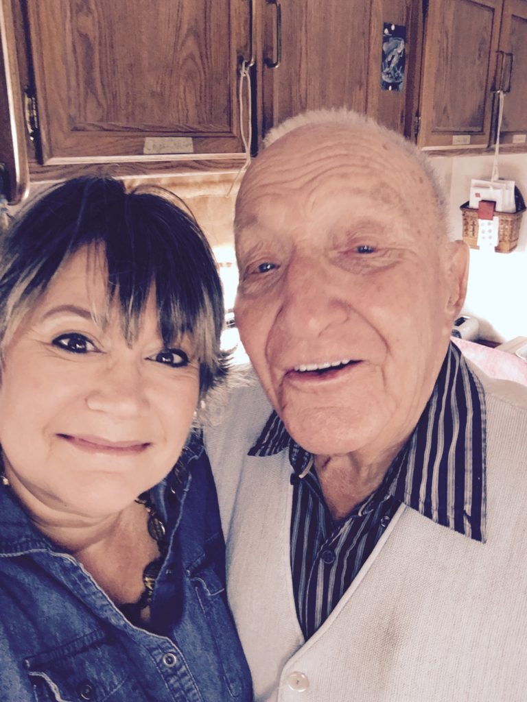 Remember Bud? Read this post if you haven’t already. Anyway, I didn’t see him out yesterday and I had to make sure I could see him one last time to say goodbye. I walked up to his trailer and he immediately threw open the door before I could even knock. “I came to say goodbye.” I said, and he said, “I knew you were leaving tomorrow, if you hadn’t come by soon I was going to try to walk down to your trailer! Come in.” So I took a step back into the 70’s into his neat, clean, vintage trailer and sat and talked with him for at least 30 minutes. He had his wife’s ashes in a box with her picture on top of it sitting on his couch. We talked more about him wanting to die and heaven and what he believes. He showed me brochures he was recently give by Mormon’s, Jehovah’s Witnesses, and more and said, “How do I know which is true?” I explained to him about grace versus works and the validity of the Bible itself and that all he needs to do is believe and accept God’s gift of Jesus. He nodded and said he did believe. I asked him if he would pray with me and he said no. I asked him if I could pray for him, and he said, “Please do, but later after you leave.” So, although I don’t have total assurance of his salvation, I know that God has been working on him and God knows his heart. His heart is searching for the truth. I sure hope he finds it (if he hasn’t already) before he dies. I asked him if I could take a picture of us together so I could remember his smiling face and he loved that. He wrote down his phone number for me and I wrote down mine for him. As I got up to leave he started crying. It took everything within me not to lose it myself. He said, “I sure am going to miss you. You are a special young lady.” To which I responded, “I am going to miss you too and I promise to pray for you every single day.” He smiled through his tears and I don’t think I’ll ever forget the look on his face. To say that he is forever entrenched in my heart is an understatement. I seriously love that sweet old man and feel strongly that he is the reason God kept us in that RV park for so long! Please, please remember Bud and keep him in your daily prayers.