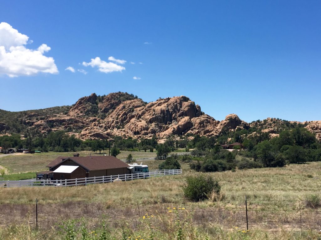 But first, let me tell you a little about what is at this point my favorite town yet. Prescott, Arizona. What’s to love about Prescott? The question is, What’s NOT to love about Prescott?! In my humble opinion, it offers the best of everything. The elevation is not too high, yet not too low at 5,000 feet, so the weather is ideal year-round (ideal for me anyway!). There is a Costco, Trader Joe’s, Whole Foods, Sprouts, and every other mainstream store you might want. The town itself looks and feels very new, clean, and inviting. It has two beautiful lakes and best of all, it is all GORGEOUSLY nestled among thousands of granite boulders. Instead of telling you, let me show you.