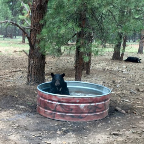 Our RV Park is at 6,770 feet in elevation, so not only are we not experiencing the extreme heat being complained about by everyone else in the country, rather the temperatures have been delightful. Since we arrived the highs here have been in the upper 70’s to mid 80’s and the lows have been in the 50’s-60’s. I just looked at our forecast for the upcoming 10 days and the highs are now down in the 70’s every single day, except Friday, which shows a high of 66 degrees! Even though it rains here fairly regularly, the humidity somehow doesn’t rise. It’s raining right now yet the humidity is 26%. The humidity here ranges from the teens to 20’s. While it seems everyone else is complaining about the heat wave I’m sitting here feeling guilty more often than not in jeans and a hoodie! Although we can drive a short distance and experience extreme (although dry) heat any time we want, we are living in what most would consider ideal temperatures.